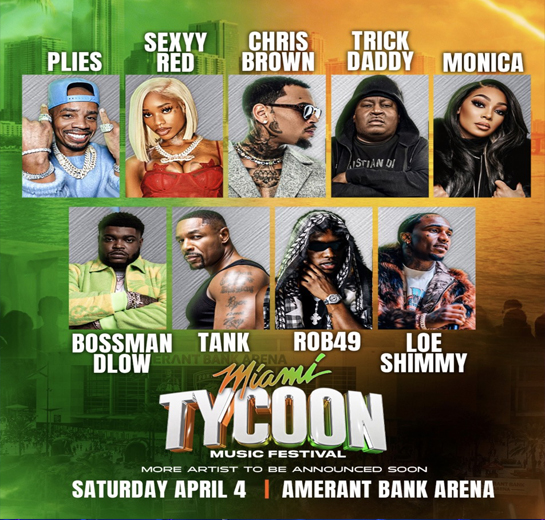 With performances from Chris brown, Sexyy Red, Plies, TrickDaddy, Monica, Bossman Dlow, Tank, Rob49, LoeShimmy and more, this Miami lineup is stacked with more special guest appearances TBA..