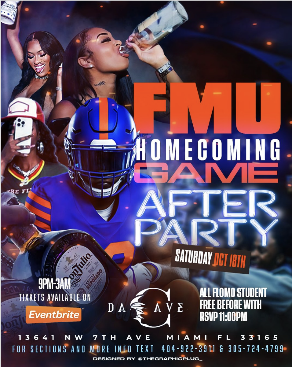 SATURDAY OCT 18TH SOBER FREE SATURDAYS!!!!? FMU HOMECOMING GAME AFTER PARTY LADIES DRINK FREE TILL 12 ? BOTTLE SPECIALS ALL NIGHT FOOD & HOOKAH AVAILABLE ALL NIGHT ?? DOORS OPEN AT 7PM HAPPY HOUR 7-10PM Powered by #DaCave @block_headent @pj_holloway @traviswireless_ @harlem_low Sounds by @dj_sonicboi_ @lowkey_free